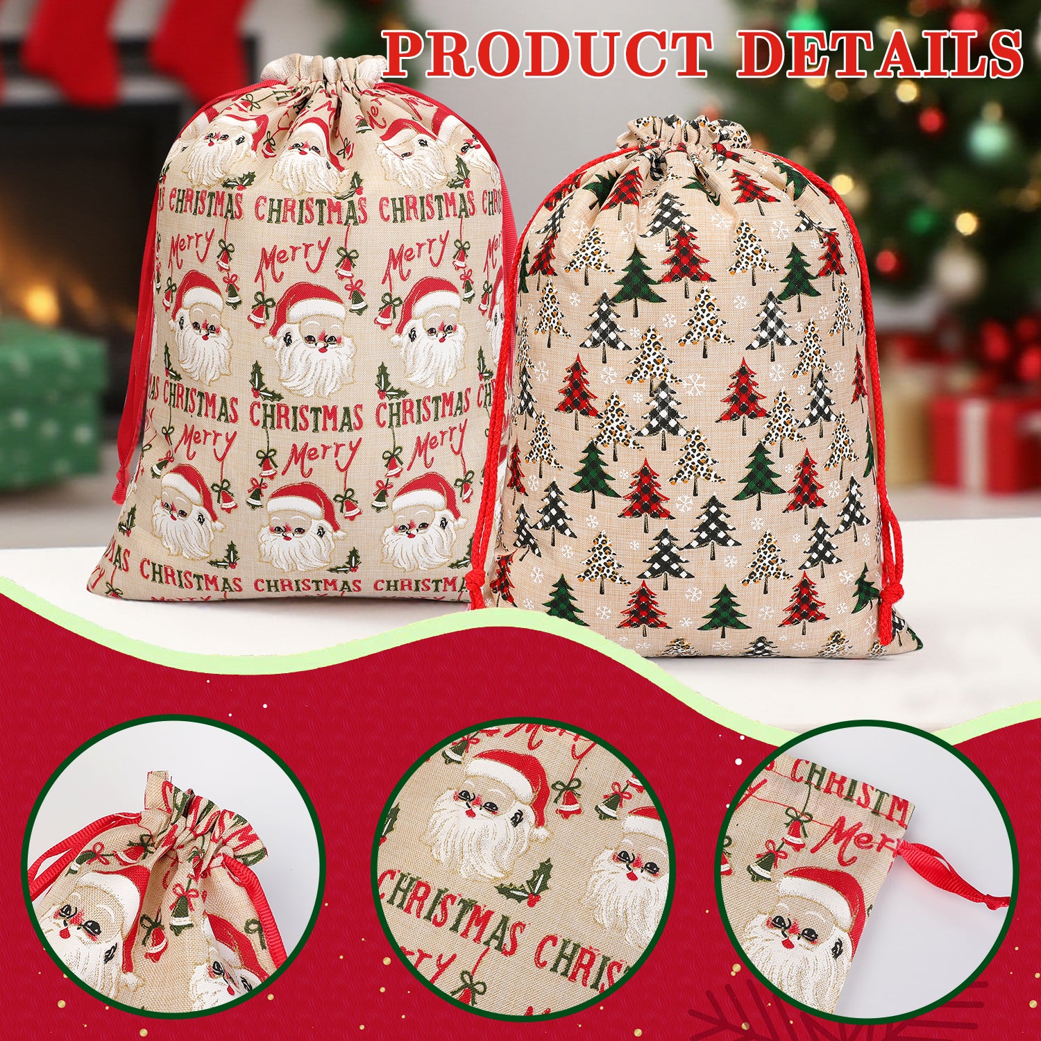 Any Size Christmas Bags for Gifts: The item features Small Medium Large Jumbo holiday Bags for Gifts. These Christmas present bags can be applied to store any size of Christmas gifts, storage toys, dolls, Christmas hats, candy, and presents at a Christmas party. Storing gifts in this bag will give children more surprises because they don't know what's inside it. Perfect Christmas bags for gifts